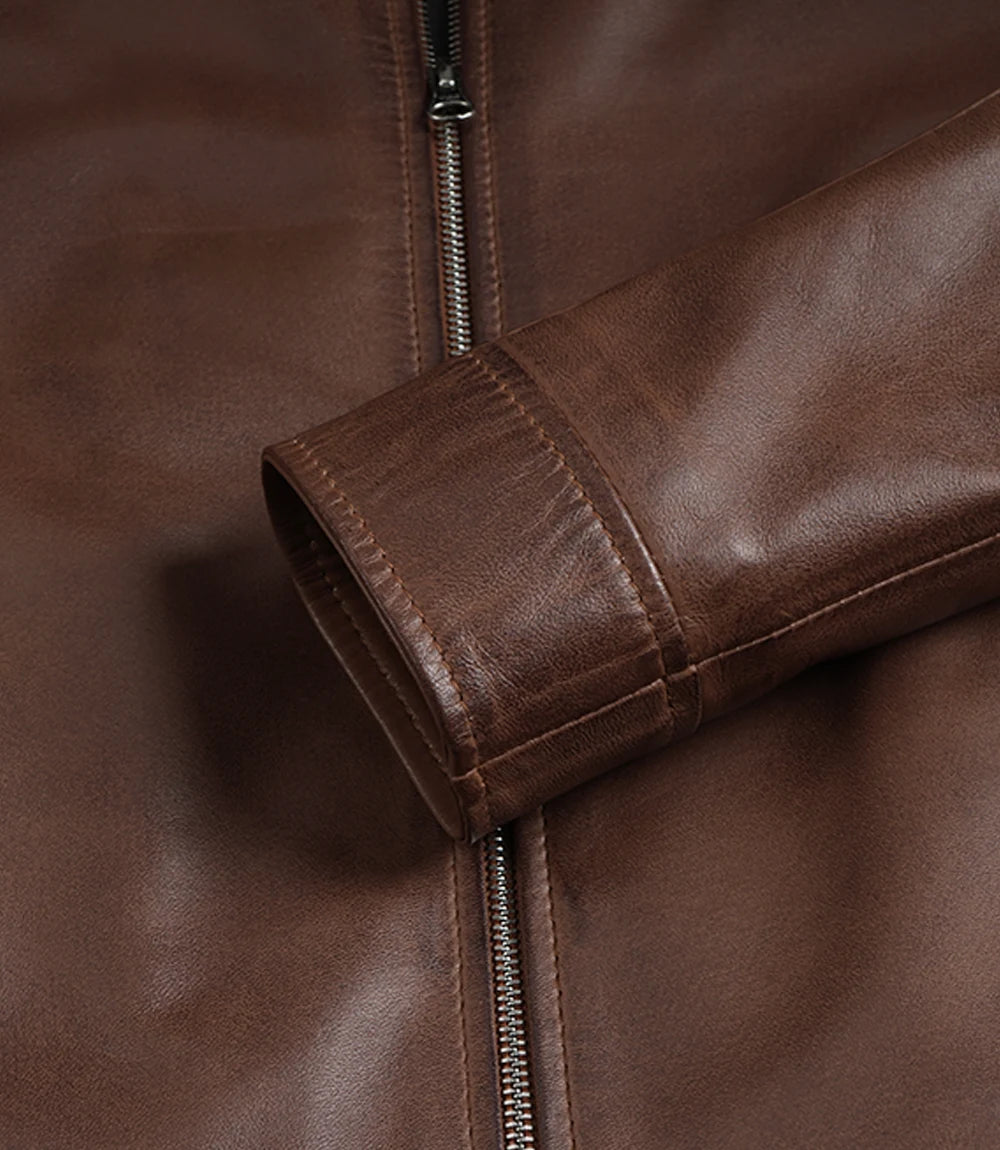 Conçue pour la femme moderne et minimaliste, cette veste en cuir d'agneau cognac apporte une touche d'élégance à ses tenues quotidiennes grâce à sa coupe Harrington épurée. Son col chemise et sa fermeture éclair discrète lui confèrent une allure soignée et facilitent la superposition. Sa doublure douce se porte confortablement par-dessus des t-shirts, des pulls et des vêtements de travail basiques. Elle s'accorde facilement avec un jean, une robe et des bottes pour un look de tous les jours.