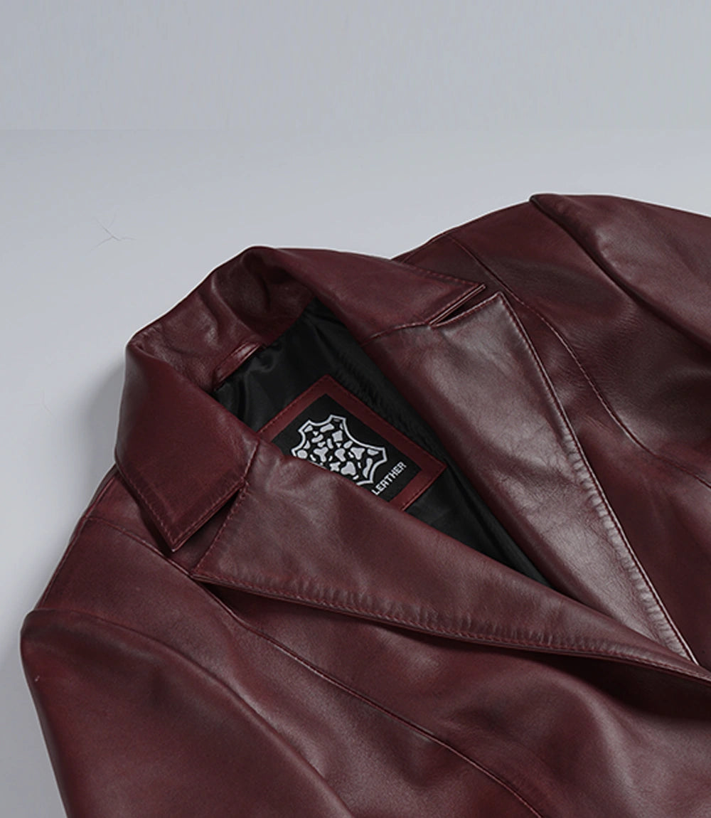 Susie Femmes Unique Bouton Bourgogne Véritable Cuir Blazer
